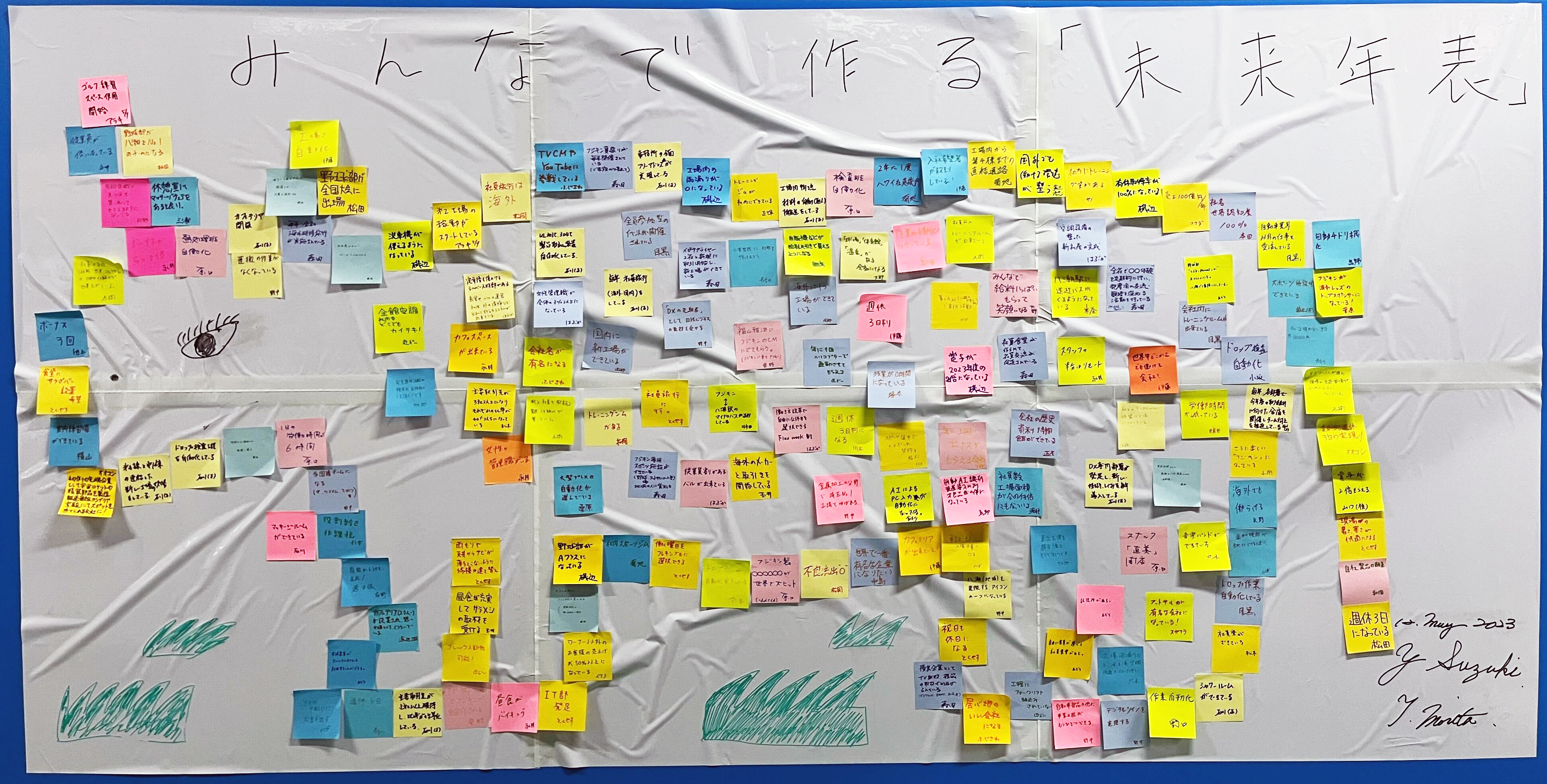 毎年、経営層と従業員で「将来こうなったらいいいな!」と思うアイディアを出し合い、5年先までの未来を描く「未来年表」を作成。描いたからこそ実現できたことがいくつもあります!