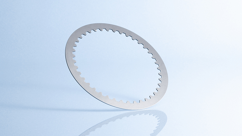オートマチックトランスミッションの中で、ギアが切り替わる時に使われる部品。部品の精度がギアの切り替えの滑らかさを左右し、最終的には燃費にも影響を与えます。当社の本製品は世界17社以上の自動車メーカーで使用され、湿式多板クラッチ・ブレーキとして自動車や産業機器のオートマチックトランスミッションに搭載されています。